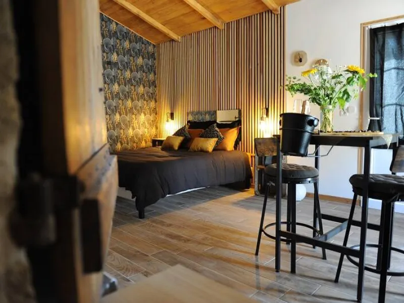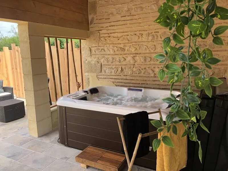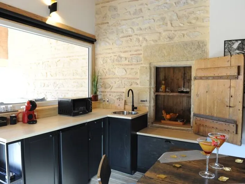 Located 10 minutes from downtown Marmande and 5 minutes from the Canal de Garonne, l'Alcôve d'Aliénor is an extension of the house, where we've kept the charm of exposed stone mixed with wood for a warm feel. You'll find all the comforts you need for a pleasant stay: a private bathroom, a fully-equipped kitchenette and a lovely private terrace. Enjoy a moment of total relaxation in the outdoor spa, or soak up the sun on the deckchairs.A setting conducive to relaxation, comfort and intimacy.