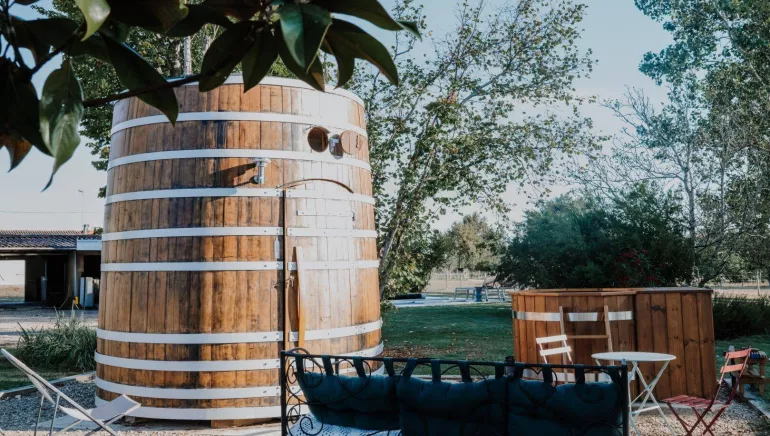 Formerly the wine vat of the prestigious Château Talbot, this century-old foudre has been completely transformed into an unusual, eco-responsible accommodation, to welcome lovers of calm, authenticity... and out-of-the-ordinary experiences.