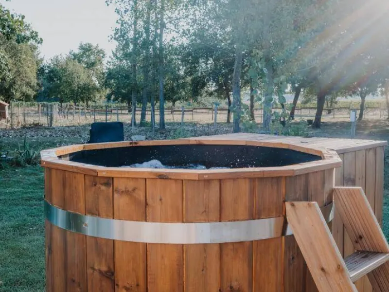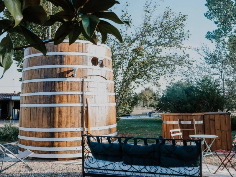 Set amidst the Marmandais vineyards in the commune of Cocumont, just a stone's throw from our guest house and to the peaceful rhythm of our horses, the Foudre Talbot invites you to enjoy a break for two, between nature, terroir and cosy comfort.Formerly the wine vat of the prestigious Château Talbot, this century-old foudre has been completely transformed into an unusual, eco-responsible accommodation, to welcome lovers of calm, authenticity... and out-of-the-ordinary experiences.