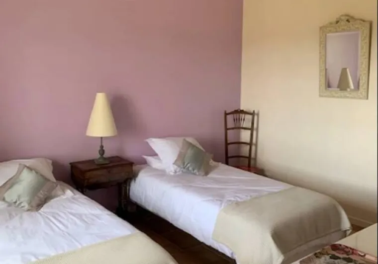 The Véronique room is located on the 1st floor, overlooking the garden from a corridor-balcony. It features two single beds and a private bathroom with shower and toilet. Ideal for friends or solo travelers, it offers a pleasant, functional setting, combining comfort and simplicity for a restful stay.Localisation