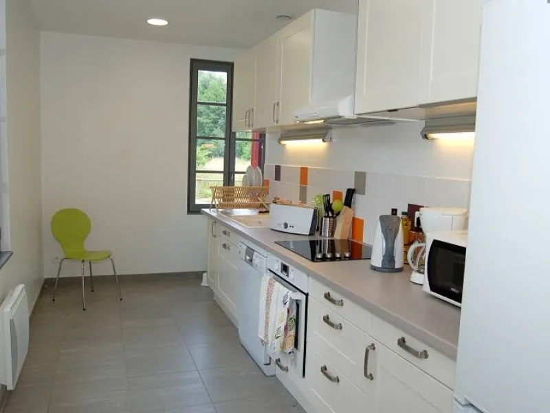On the ground floor, a large bright living room and a fully equipped kitchen, a bathroom with toilet