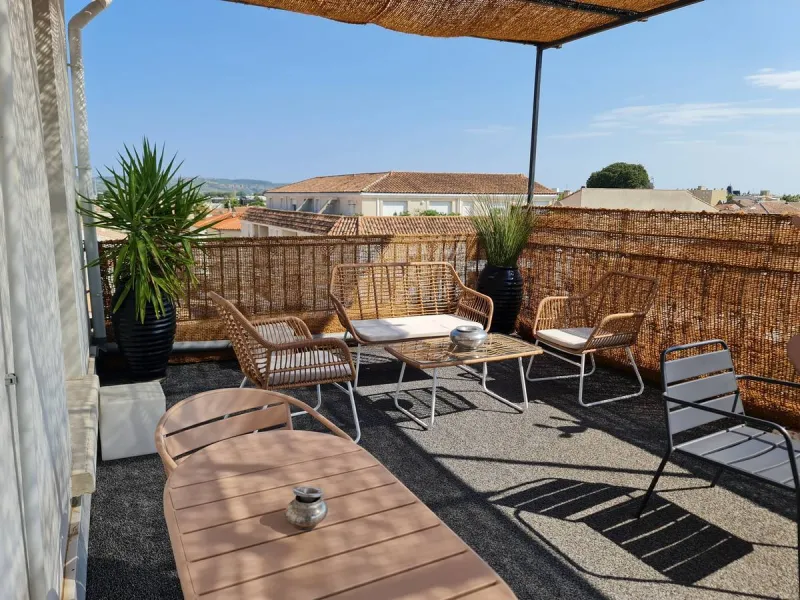 The third-floor terrace, open to all, offers an incredible view over La Clape and the city roofs.