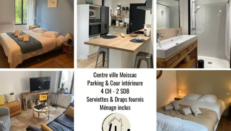 This house is the perfect place to stay for families and friends who want to explore Moissac. Just a stone's throw from shops and the lively Saturday and Sunday market, it is located 400 meters from the prestigious abbey and close to the canal and banks of the Tarn. The train station is a 10-minute walk away.