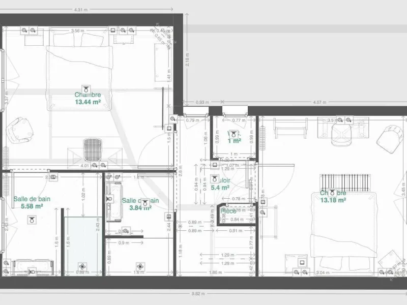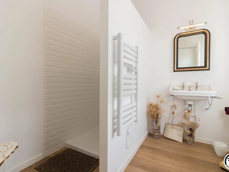 - First floor: 2 bedrooms, each with a double bed (160cm), 2 shower rooms, 1 of which is private to one bedroom, separate WC.