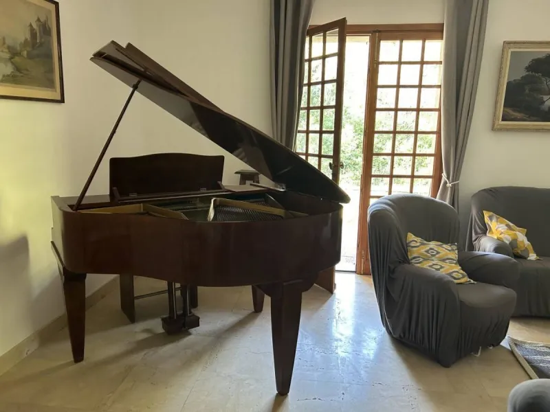 Included are bed linen, household linen (tea towels, shower mats, washbasin mats, but not towels) and general cleaning (we ask that you leave the place reasonably clean, i.e. rubbish bins emptied and fridges empty). Inside: piano, fireplace, board games, library¶