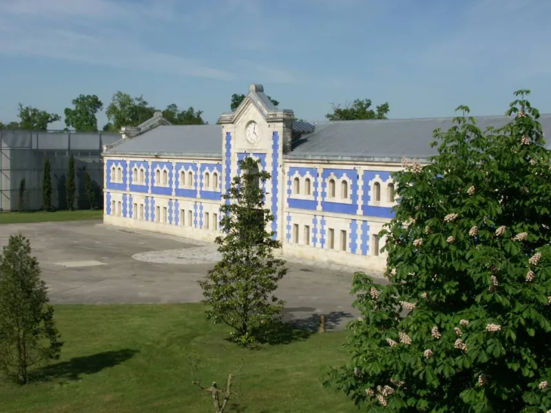 From here, guests can admire the adjacent chateau, with its splendid modern cellar building, radiant in dark blue.