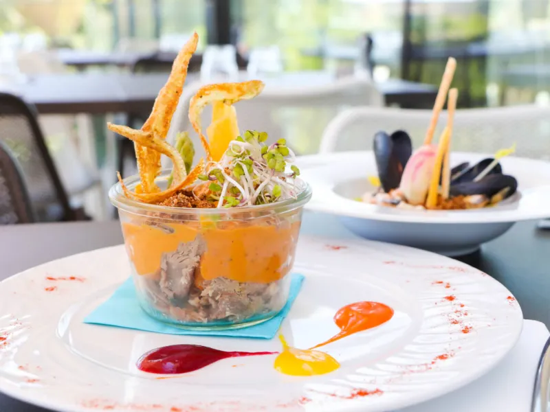 With its majestic glass roof in the shape of a barge's prow, "le 9" overlooks the Orb plain and the Biterroise acropolis on one side, and the Fonseranes lock scale on the other. The restaurant offers a "bistronomic" menu and local wines. Ice cream service on the spot.Localisation