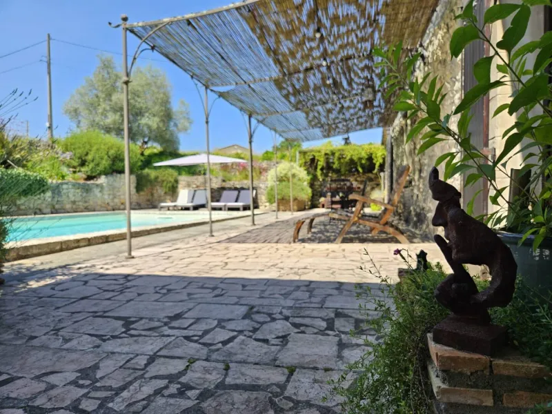 Charming stone cottage sleeping 4, with private garden, barbecue and forest views. Enjoy the outdoor setting under the hundred-year-old fig tree or on the terrace with awning. The two-storey house has two double bedrooms, the "flower room" with a 160 cm double bed and the "bird room" with a 140 cm double bed. Beds are made up on arrival.All the necessary amenities are at your disposal, including free internet access, on-site parking and a barbecue. You also have access to our park of over one hectare, our shared swimming pool (9.5mX4.5m, 150cm deep) and various outdoor games such as pétanque, badminton, landaise bowling, rugby, volleyball, tennis... All you have to do is put your bags down and enjoy!
